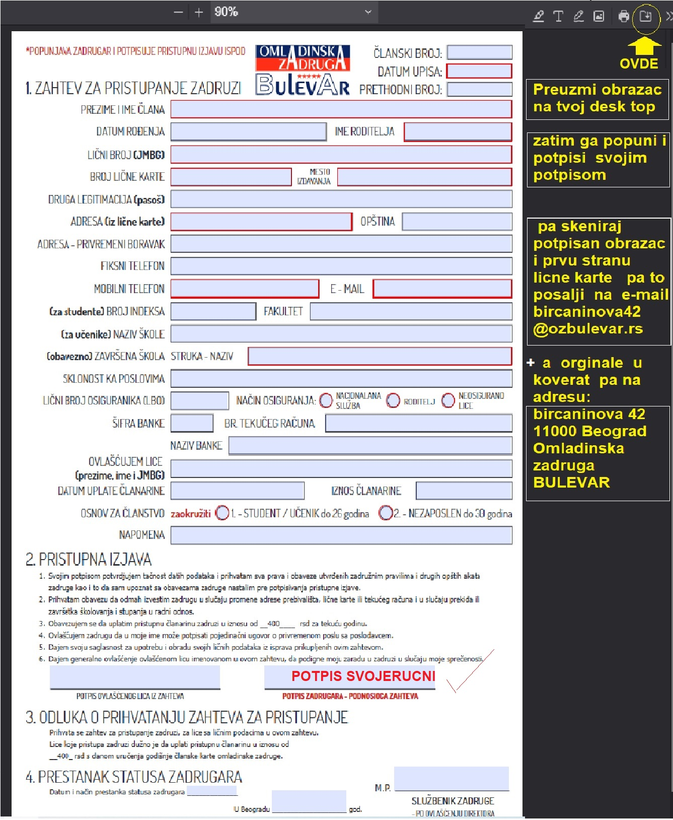 PREUZMI FORMULAR ZA UČLANJENJE U OMLADINSKU ZADRUGU BULEVAR