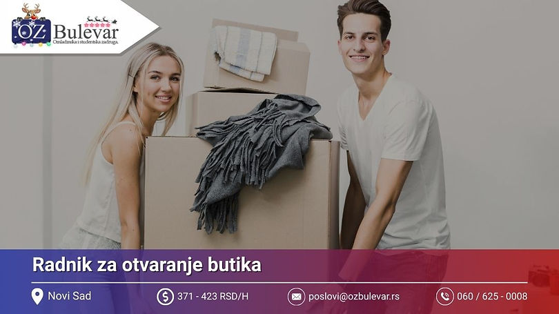 Omladinska i studentska zadruga Bulevar ima najveću ponudu poslova za studente i omladince. Preko omladinske i studentske zadruge možete pronaći oglas za posao u svim gradovima R. Srbije kao što su Beograd, Novi Sad, Niš, Kragujevac, Kraljevo, Čačak i ostale velike gradove u Srbiji.